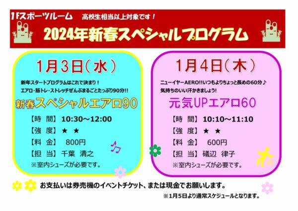 スポーツルーム新春スペシャルプログラムのお知らせです♪